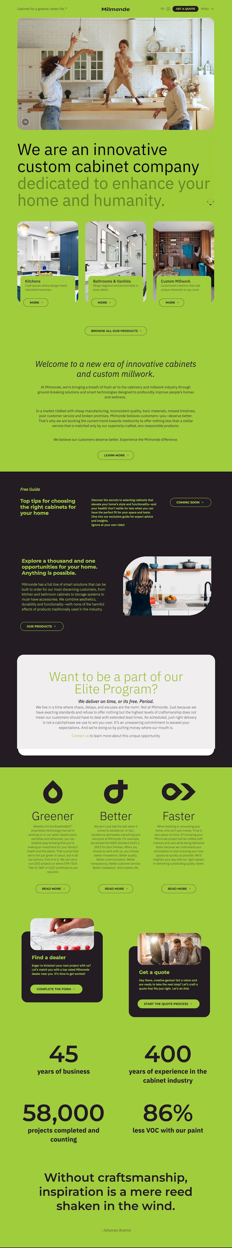 Milmonde, a company specializing in kitchen cabinets, needed to modernize its online presence while retaining the achievements of its existing site. Our mission was to redesign the milmonde.com website in Webflow, following the new design provided by LeapZoneStrategies. It was also essential to make the site responsive for mobile and tablet devices.