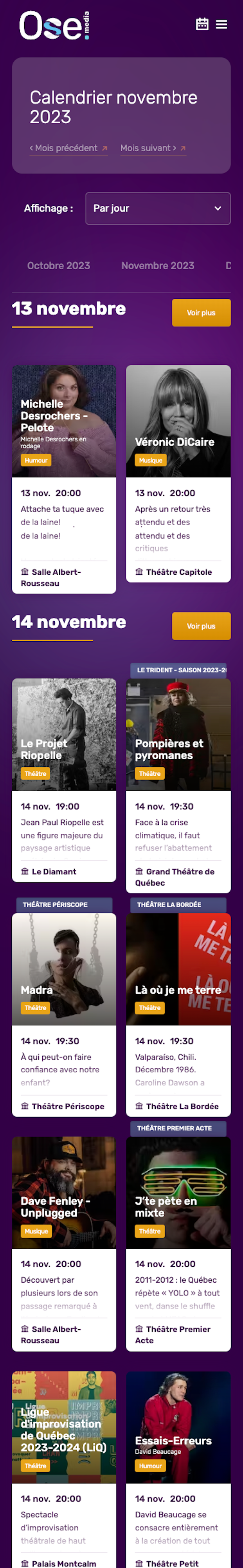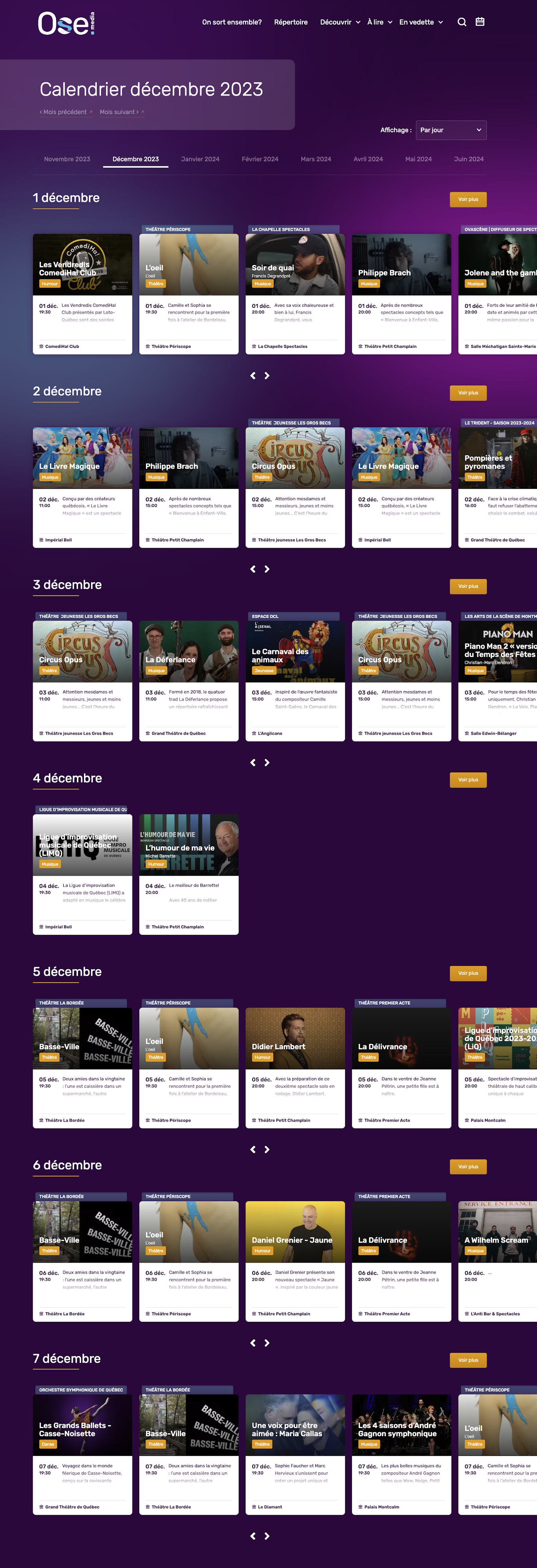 OSE Média est un site Web puissant qui est automatiquement mis à jour avec tous les derniers événements au Québec. Le site Web a une interface facile à utiliser et offre une variété de filtres pour vous aider à trouver ce que vous cherchez.